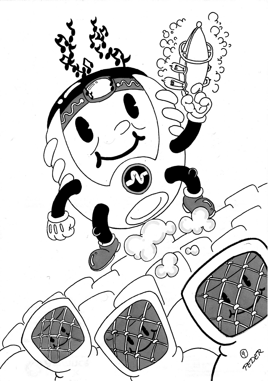 the second in the batch Henning sent us, it's a stellar Pie-eyed MODOK in the style of an early 20's cartoon character. He comes with awesome rubber hose style limbs, a blaster sporting industrial bulbs, and even jaunty lyrical music notes radiating Kirby style of his Mind blast array. Toss in some three fingered white gloves, and some henchmen with Cyclone fence for face guards and you've got something truly magical.