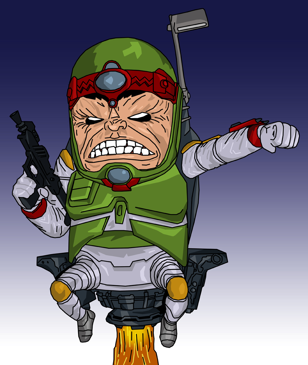 What if MODOK and Boba Fett were one and the same character? I'd like you to meet MOBA FETT, the galaxy's greatest bounty hunter and destroyer. This Mental Organism Built for Annihilation and For Eradicating and Terrorizing Themall was digitally created in Photoshop . . . because I could.