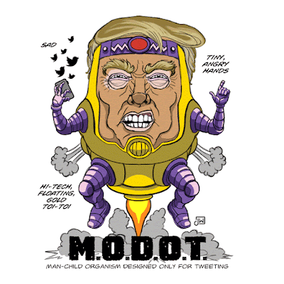 Wooeee! We got us another Trump MODOK, this spectacular specimen by the talented Joel West. We here at MMM always say: You can never have too many TrumpDOKs! Check out some of Joel's amazing work at his website, art.joelwestart.com. Thanks Joel!